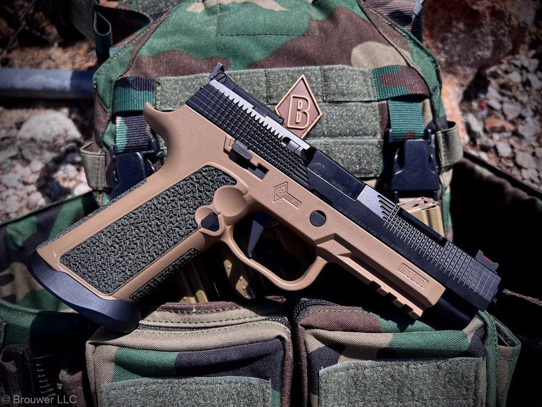 The Brouwer M1811 Grip Module corrects the main ergonomic issues with the P320 platform – high bore axis, rounded slippery grip, short beavertail. The modern 2011 pistol is the standard for shooting performance, control, and ergonomics.